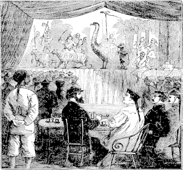 In the waiting room a hundred or more persons were gathered. The men were well wrapped in furs, and among the ladies hoods were more numerous than bonnets. Three-fourths of the males and a third of the females were smoking cigarettes, and there was no prohibition visible. In accordance with the national taste the chief article sold at the buffet was hot tea in tumblers.
