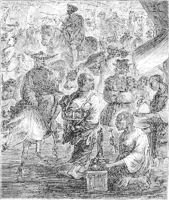 The Kitai Gorod, or Chinese town of Moscow, is close by the Kremlin and outside its walls. The only feature worthy the name of this part of the city is the number of Tartar inhabitants and the immense bazaar, or Gustinni Dvor, where the principal trade of Moscow has been centered for nearly three hundred years. The quantity of goods in the bazaar is something enormous. A Russian said to me: “If half the houses in Moscow were stripped of furniture, ornaments, and all things save the walls and roofs; if their inhabitants were plundered of all clothing and personal goods except their bank accounts,—the gastinni dvor could supply every deficiency within two hours. You may enter the bazaar wearing nothing but your shirt, and can depart in an hour dressed and decorated in any manner you choose, and riding in your carriage with driver and footman in livery.”