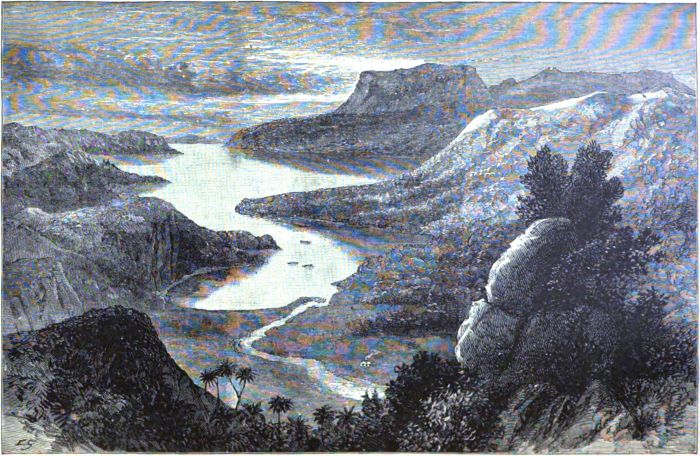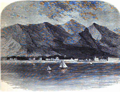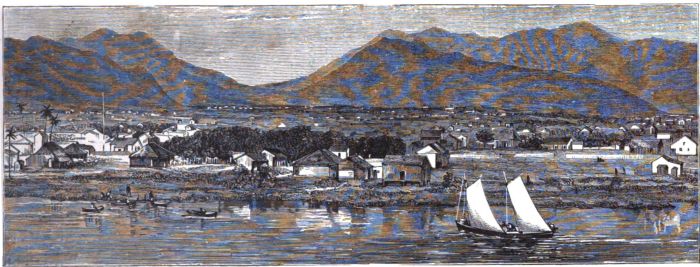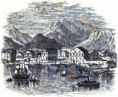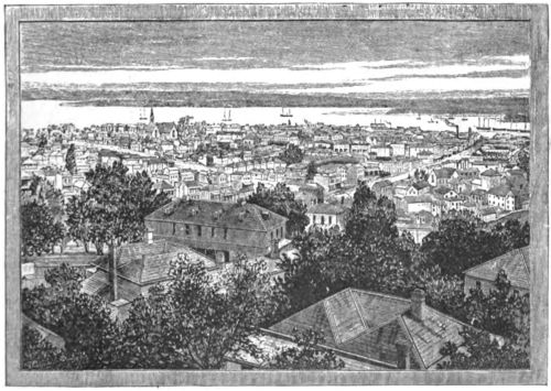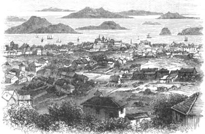 Back of Honolulu rises a series of volcanic mountains three or four thousand feet high, and from the town itself to the foot of these mountains the ground rises in a gentle slope, so that the view from the harbor is an excellent one. Doctor Bronson called the attention of the youths to a valley opening through the mountains, and to the contrast between the cliffs and slopes, and the bright waters immediately around them. All agreed that the place was[Pg 5] very prettily situated, and the view was a great relief after the monotonous voyage from San Francisco.