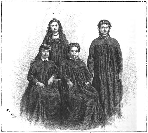 "Go where you will on these islands," said the Doctor, "you will[Pg 11] find churches everywhere, and not far from each church there is a native school-house where the children are taught to read and write. On Sunday the churches are filled with worshippers, and there is no more devout people anywhere than on these islands. There are now more churches than are needed by the population, for the reason, not that there is any decline in religious zeal, but because of the decrease in the number of inhabitants. At the time of Captain Cook's discovery the islands were estimated to have a population of not far from two hundred thousand. Small-pox, measles, and other diseases have made terrible havoc, and at present the native population is little if any above fifty thousand. It has been declining with more or less rapidity ever since the beginning of the century, and the last census showed a considerable falling off since the one that preceded it.