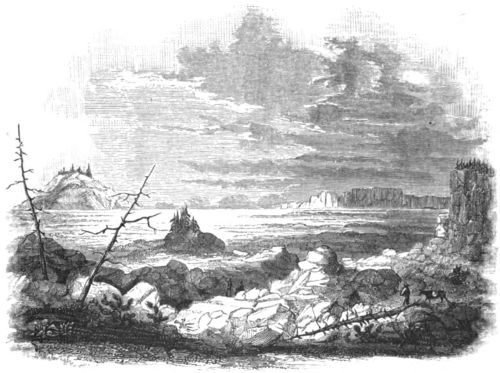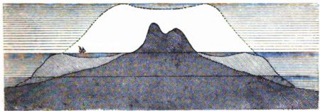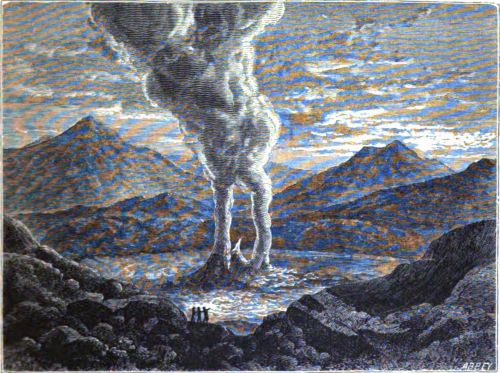 It was estimated that fifty square miles of country were covered to a depth of three feet and more by the mud, ashes, and stones, and sixteen hundred square miles more or less affected by the eruption or the deposits from it. Stones weighing half a ton and upwards were found nine miles from the scene of the explosion, and some within a mile or less weighed several tons. The explosions were heard eighty miles away, and are described as resembling heavy guns at sea. They continued about three hours, ceasing before daylight; and the night is well described as a night of terror.