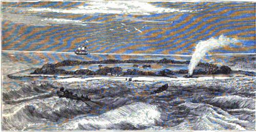 "Dead ahead, sir!" was the reply; but it was almost drowned by the buzz of excitement which the announcement produced. The passengers, who had been strolling about the decks or listlessly lounging in their chairs, rushed hastily forward, in their eagerness to catch a glimpse of the land which had been reported "dead ahead."