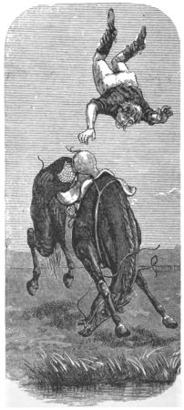 [11] In an article on "Ranch Life in the Far West," in The Century Magazine for February, 1888, Hon. Theodore Roosevelt says: "The flash-riders, or horse-breakers, always called 'broncho-busters,' can perform really marvellous feats, riding with ease the most vicious and unbroken beasts, that no ordinary cow-boy would dare to tackle. Although sitting seemingly so loose in the saddle, such a rider cannot be jarred out of it by the wildest plunger, it being a favorite feat to sit out the antics of a bucking horse, with a silver half-dollar under each knee or in the stirrups under each foot."