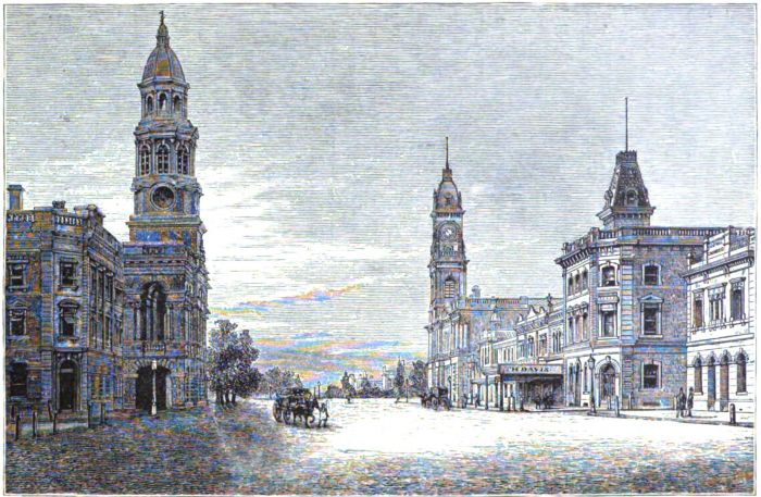 Previous to the discovery of gold in Australia, in 1851, Americans had but little knowledge of that far-away land. The opening of the auriferous fields attracted the attention of the whole civilized world to the antipodes, and many Americans joined the multitude that went thither in search of wealth. Since that time our relations with Australia have, year by year, grown more intimate. Railways across our continent and steamship lines over the broad Pacific have brought Sydney and Melbourne in juxtaposition to New York and San Francisco, and in this centennial Australian year we may almost regard the British colonies under the Southern Cross as our next-door neighbors.