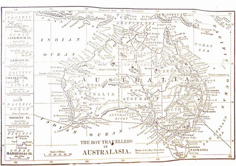 Many of the books consulted in the preparation of "The Boy Travellers In Australasia" are named in the text, but circumstances made it inconvenient to refer to all. Among the volumes used are the following: Wallace's "Australasia," Forrest's "Explorations in Australia," Warburton's "Journey Across the Western Interior of Australia," Alexander's "Bush-fighting in the Maori War," Smyth's "Aborigines of Victoria," Bodham-Whetham's "Pearls of the Pacific," Murray's "Forty Years of Mission Work in Polynesia," Cumming's "At Home in Fiji," Markham's "Cruise of the Rosario," Palmer's "Kidnapping in the South Seas," Buller's "Forty Years in New Zealand," "Australian Pictures," Harcus's "South Australia," Eden's "Australia's Heroes," Trollope's "Australia and New Zealand," and Nordhoff's "Northern California, Oregon, and the Sandwich Islands."