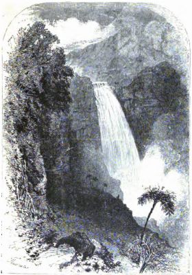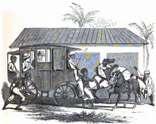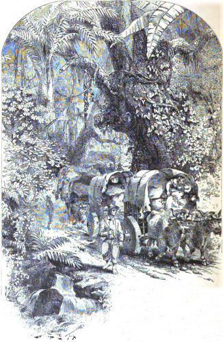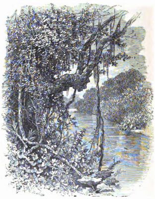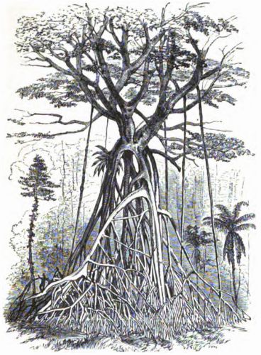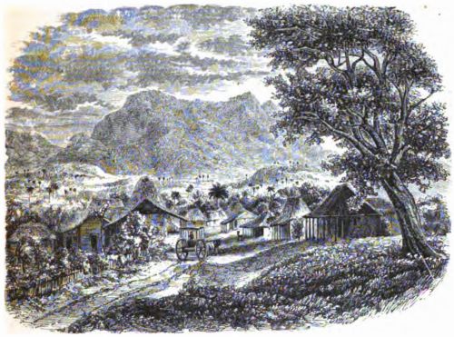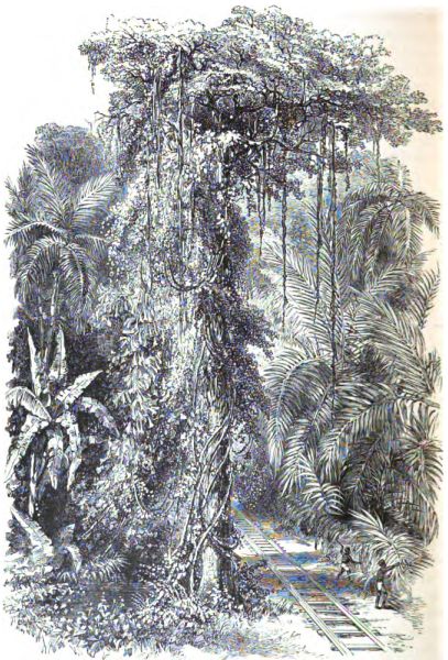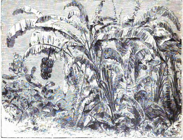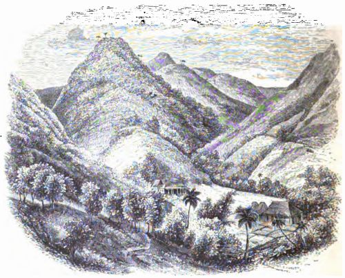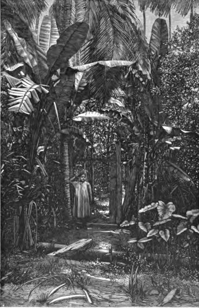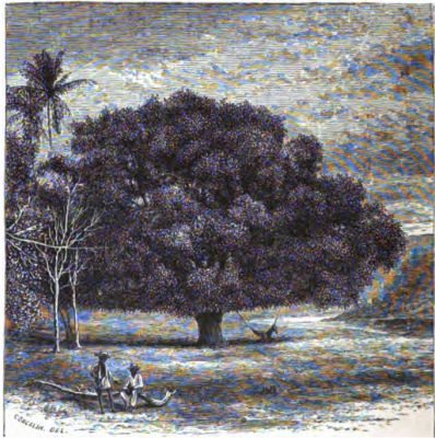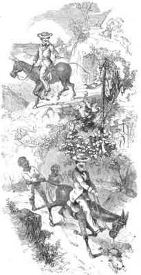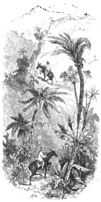 "The road to the plantation was very steep in several places, and the mules that we rode had all they could do to carry us. The path wound[Pg 444] in and out among the rocks, and under the trees peculiar to the tropics; and one of the trees came near being the cause of my falling over a high cliff."