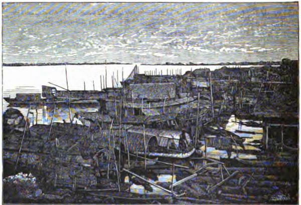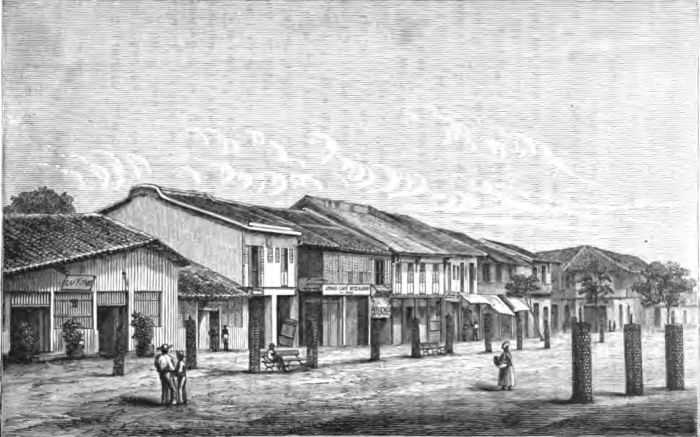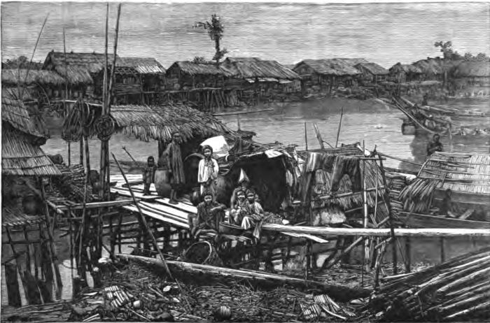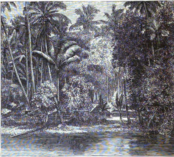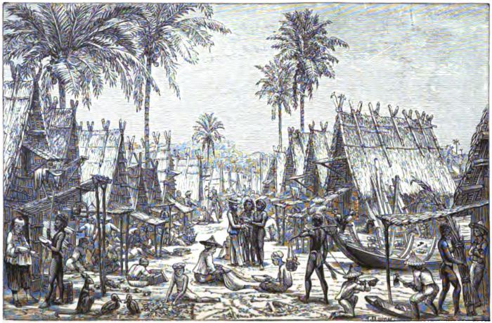"It is not regularly visited by steamers, as it is out of the routes of travel, and for a part of the year it is almost deserted. In May and June it is filled to overflowing with a mixed lot of people from all parts of the East. There are Chinese in considerable number, who come to buy the articles brought to market by the inhabitants of the islands for a long distance; and there are men from Macassar, Timor, Ceram, and other parts of the Archipelago, as well as the natives of Aru, who belong to the Papuans I have already described. The town consists of a single street of mat-covered huts and sheds, with a lot of straggling buildings in the rear that are set down without any regard to order or regularity.