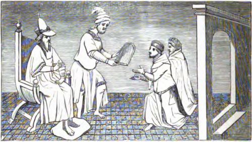 "When he returned he was silent and sorrowful, and did not speak a word for three days. Then he summoned his officers, and told them what[Pg 428] the spirit had said. He described the spirit as having a face of burnished gold, and a voice that sounded like distant thunder.