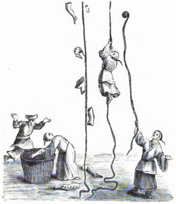 "Others treat them harshly—perhaps not without cause—sometimes, and punish them severely for disobedience. While I was at Dobbo, a Chinese merchant fastened one of his slave-debtors in a cangue, and kept him there an entire day, chained to the wall of his shop. The man had been caught stealing from his master, and the latter made himself judge, jury, and police-officer without delay. The cangue is a wooden collar around the neck; it is about three feet square, and made of planks from one to two inches thick. It is a heavy article of wearing apparel, and not at all ornamental."