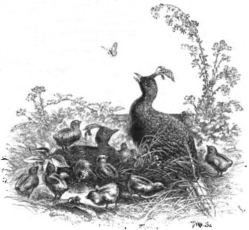 "The birds have a curious habit of getting up dancing-parties in the month of May, when their plumage is finest. They assemble before sunrise in a tree that has plenty of room among its branches for them to move about, and as soon as the sun is fairly up they begin their dancing. They elevate their plumes as peacocks display their tails, stretch their necks, raise their wings, and hop from branch to branch in a state of great excitement.