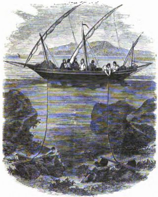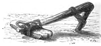 "No," replied the gentleman; "but it is not far from there to the Aru Islands, where the Great Bird of Paradise lives. I went from Timor[Pg 432] to Aru in a native boat, and narrowly escaped drowning on the way. We were caught in a storm, and anchored near a small island off the coast of Aru; the Malay anchor is a stick of wood from the fork of a tree, with a stone to give it weight, and, as it has only one fluke, you can never be sure that it goes down so as to seize the bottom. Ours bothered us so that we had to throw it several times, and when we finally got it to hold we were not twenty yards from the rocks where the wind was driving us.