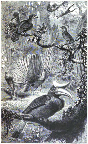 "Not by any means," was the answer. "They are so busy with displaying their feathers to each other, that they do not take notice of the disappearance of one of their number until they are greatly reduced. The morning I went out to see the business, I was stationed in a little bower about a hundred yards from the tree where the birds were, so that I could see all that went on. There were twenty-one birds there, all beautiful males, and they made the prettiest sight of the kind that ever came before my eyes. The natives shot fifteen of them, and finally one of the birds was not hit hard enough to prevent his screaming as he fell. The others then took the alarm, and in two minutes they were all out of sight."