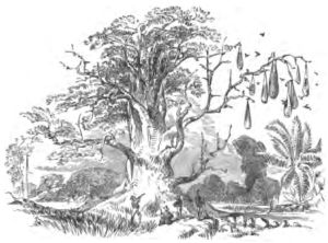 "From Banda I went to Ceram, to see the process of obtaining sago. Perhaps you are fond of sago-pudding, and may be interested to know where sago comes from, and how it is prepared."