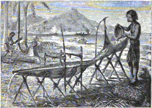 "A single tree will produce from eight hundred to one thousand pounds of sago," was the reply, "which will support a man for a year. Two men can reduce a tree to dry powder in five days, and therefore we may say that ten days' labor will support a man for a year. The result is[Pg 443] that in the sago country the people are indolent, and not at all prosperous; they have no incentive to work, and therefore make no effort to do anything. They wear very little clothing; and as for their houses, they have no occasion for anything more than rude huts, which can be built by a couple of men in a few hours. It has been observed by all who have visited Ceram that the inhabitants are not as well off as the people of the islands that produce rice, as the latter must work a great deal harder to support themselves, and will lose their whole crop unless they pay attention to their fields.