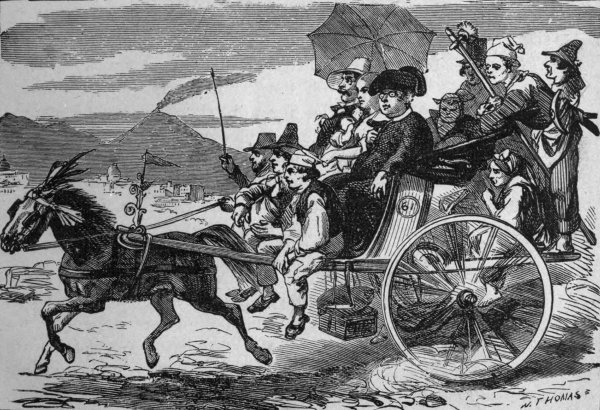 | THE GREAT ERUPTION OF VESUVIUS.—WHAT IT DID.—THREE CITIES WIPED OUT.—LAVA AND ITS CHARACTER.—GOING TO THE MOUNTAIN.—SKIRMISHING WITH GUIDES AND BEGGARS.—ARCHITECTURAL STEEDS.—A HORSE WITH A HAND RAIL AROUND HIM.—COAT-HOOKS TO LET.—A MOTLEY CROWD.—HOW AN AMERICAN WAS MOUNTED.—A NEW MODE OF SPURRING.—THE ROAD FROM RESINA.—BURNING LAVA.—CROSSING THE LAVA BEDS.—CLIMBING ON FOOT.—HAPS AND MISHAPS.—AN ENGLISHMAN’S ACCIDENT.—LIGHTING A CIGAR AT THE CRATER.—SUFFOCATED BY SULPHUR FUMES.—DOWN AMONG THE ASHES.—A LONG FALL AND SLIDE.—IN HERCULANEUM.—UNDERGROUND BENEATH THE CITY.—“LOOK HERE.”—HOW THE CITY WAS DISCOVERED.—THE ERUPTION OF 1872.—HORRIBLE SCENES.—EXTENT OF THE DESTRUCTION. | 178 |