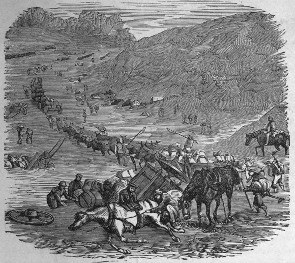 The whole night was radiant, with flashing artillery and bursting shells. The brightness of the moon and stars was quite eclipsed; they looked dim and yellow through the blaze and smoke of war. The barges were struck again and again, and so were the bales of hay; but still the boats were not materially injured, and we could plainly hear the puff, puff, puff, of the tug, doing its best to carry along the great burden to which it was tied.