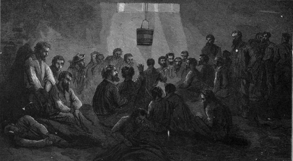 At Salisbury we were kept like cattle (except that we were not nearly so well treated), in a large enclosure, sleeping, or rather lying down, in an old building formerly used as a cotton factory. This building, with a number of miserable out-houses, was employed as the prison quarters, until some thousands of enlisted Union men were sent down there, when a system of freezing, starving, and murder seemed to be deliberately established by the rebel commandant.