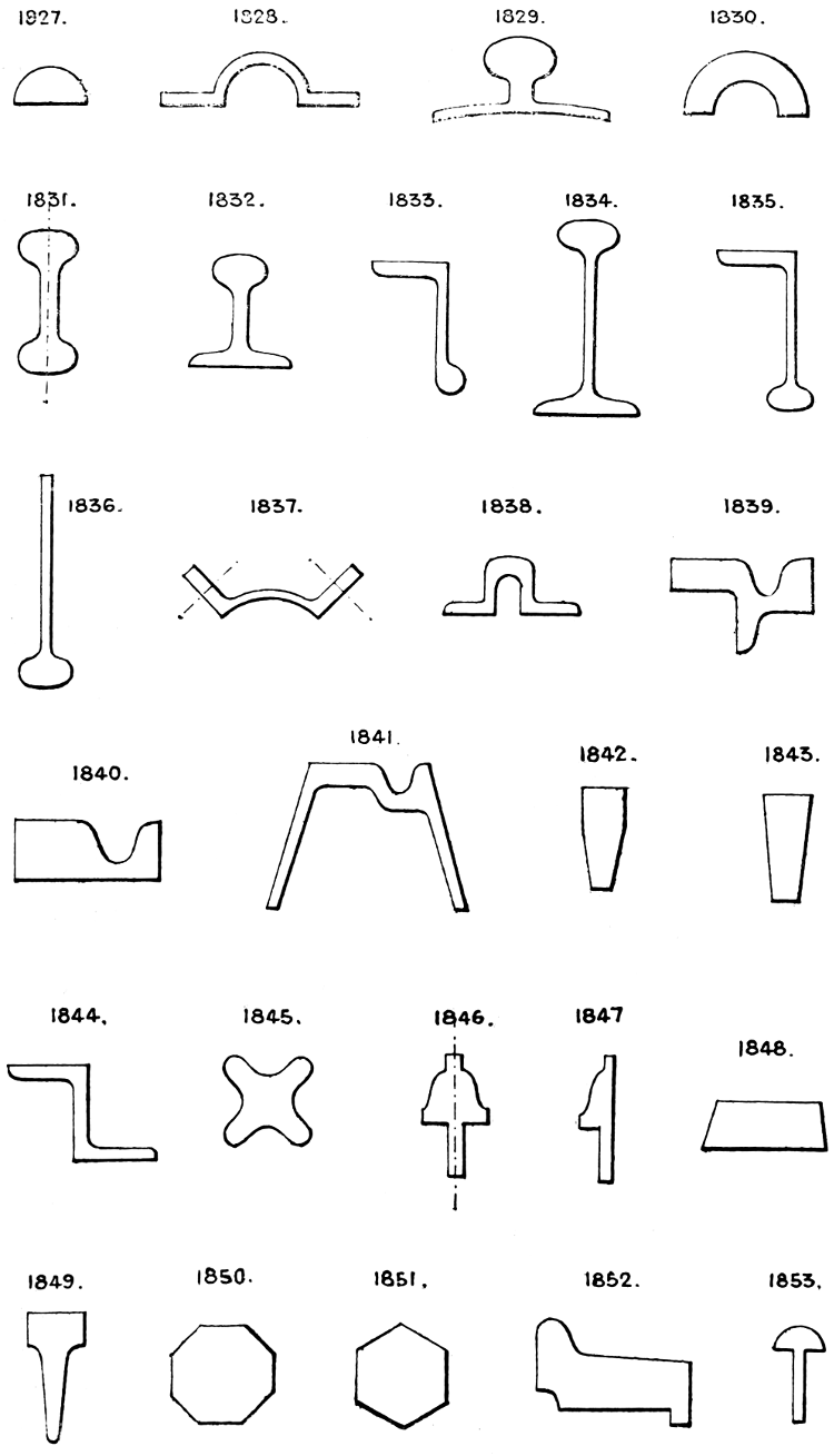 The limiting weights and dimensions of the steel plates of Bolekow, Vaughan and Co. are 18 cwt. 80 sq. ft. in area, 23′ in length, and between 12″ and 60″ in width. Extras are, for every hundredweight, or part of the same above 18 cwt., 10s.; for every foot, or part of a foot, above 23′ in length, 5s.; for every square foot above 80 sq. ft., 1s.