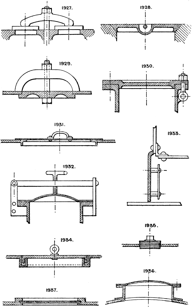 Street manholes and lampholes are round, rectangular, or oval covers, strongly made to carry street traffic, and fitted in strong cast-iron frames, so as to be easily removable, and yet practically air-tight. Those fitted over sewer manholes are frequently provided with charcoal filters to arrest foul gases.