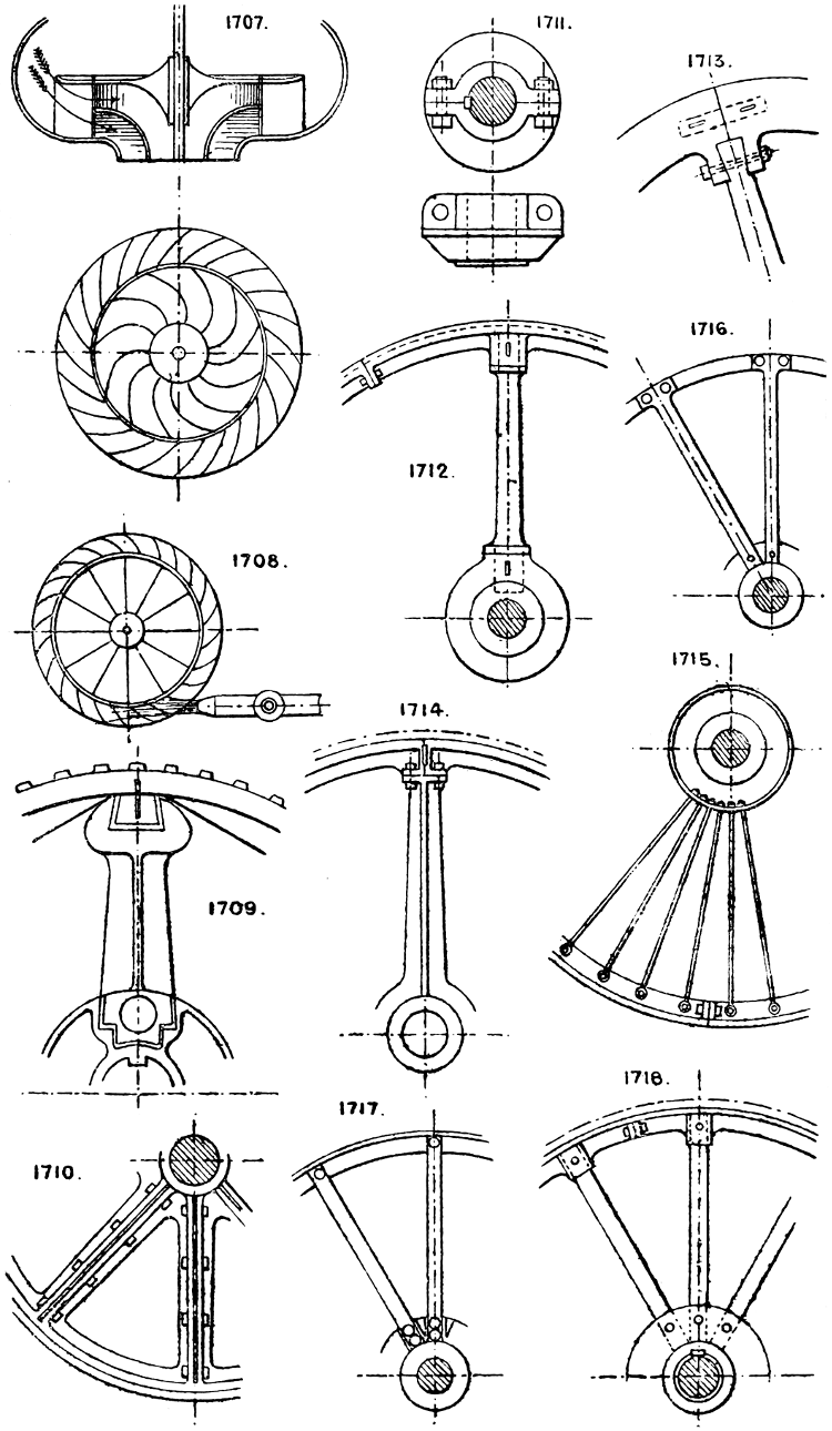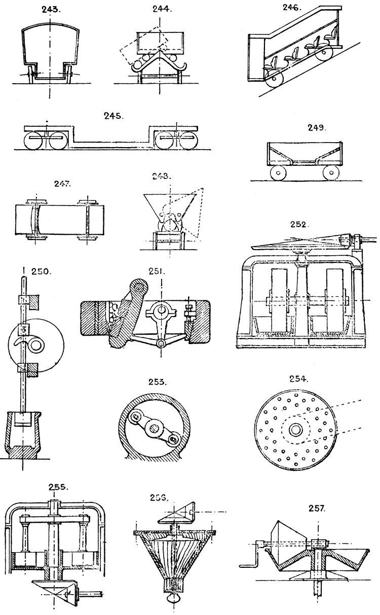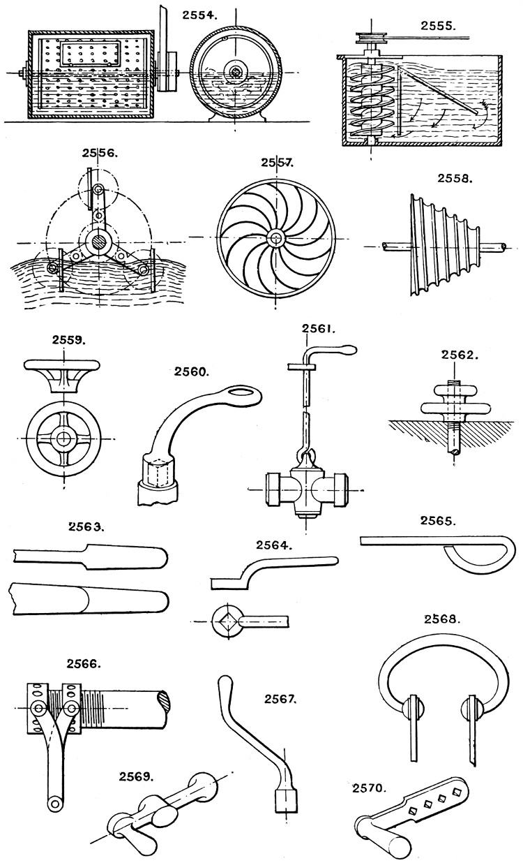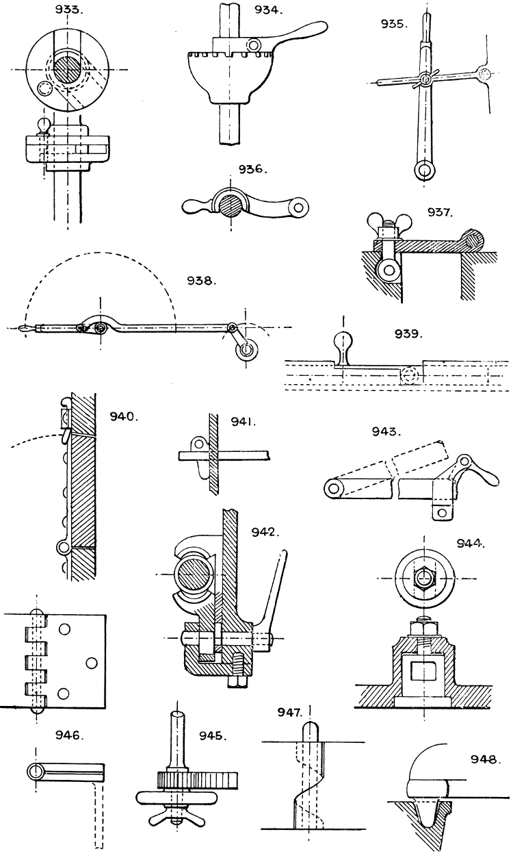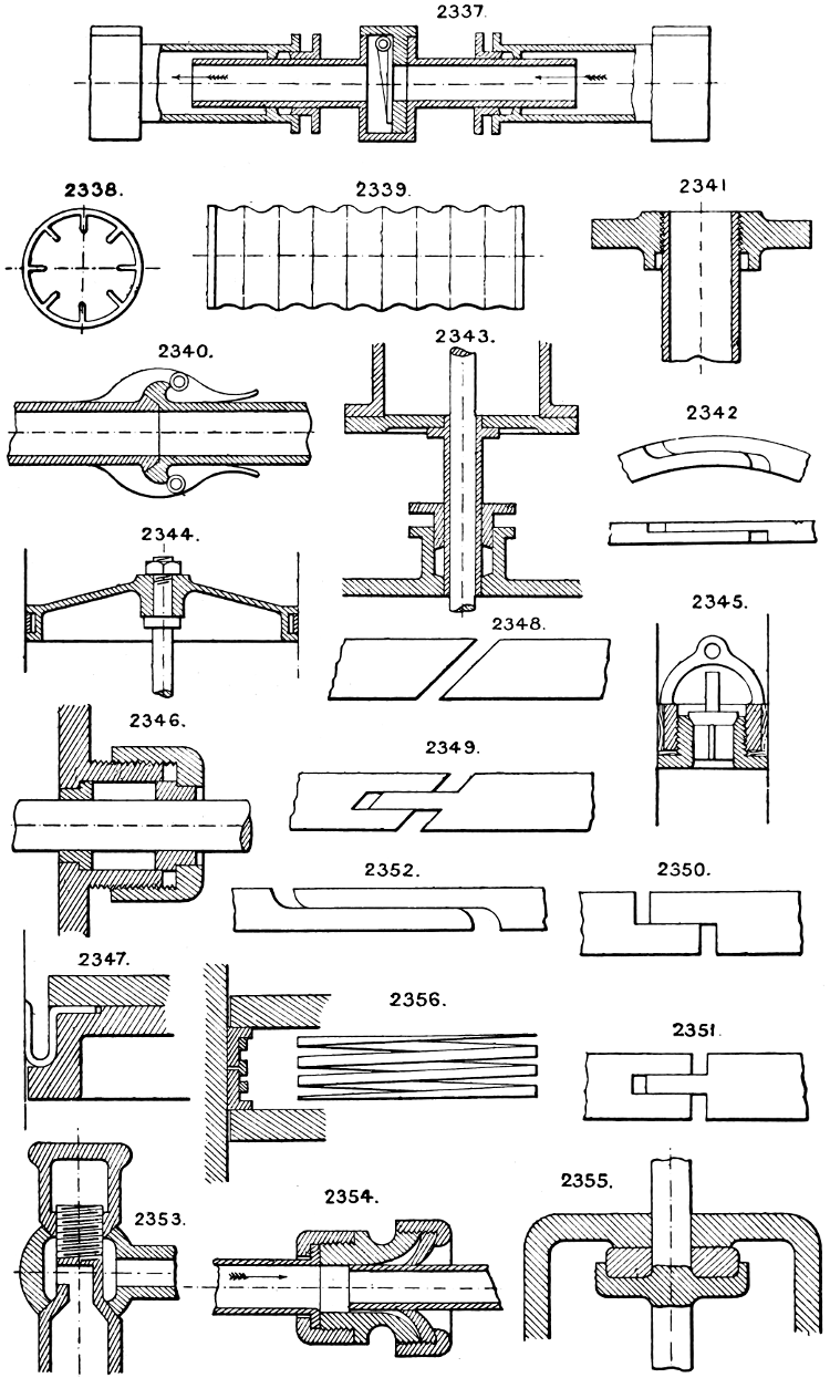 In the course of twenty-five years of such experience, I have found the want of such a volume as the present, and endeavoured to supply the deficiency in my own practice by private notes and sketches, gathered promiscuously, until the difficulty of selection and arrangement became so apparent that I began to classify them, as they exist in the following pages. A few weeks of unusual leisure have enabled me to complete this work and amplify it by numerous additions, and it is now presented in the hope that it will be found of equal service to others engaged in the head-splitting, exhausting work of scheming and devising machinery, than which I can conceive of no head-work more wearing and anxious, Several valuable works have already[vi] found numerous users, and there is no lack of admirable collections of memoranda, rules, and data for designing and proportioning the various constructive details of machinery; but, as far as I am aware, there is no work in existence which aims at the same purpose as is attempted in the following pages, viz. to provide side by side suggestive sketches of the various methods in use for accomplishing any particular mechanical movement or work, in a form easily referred to, and devoid of needless detail and elaboration. A sketch, properly executed, is—to a practical man—worth a folio of description; and it is to such that these pages are addressed. For the same reason it has been deemed undesirable to add to the various sketches any rules or tables relating to strengths or dimensions, which may be found in numerous well-known volumes.