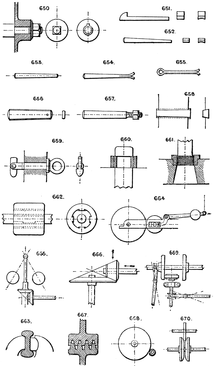 | Fastening wheels to shafts | 86, 274 | 37 |