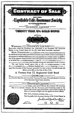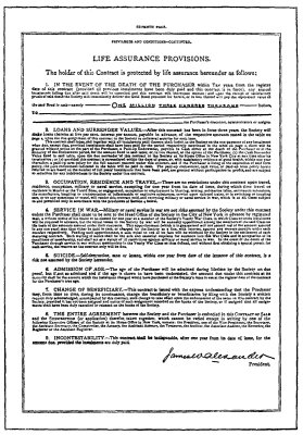 What is life insurance—honest life insurance? A contract between two parties by which the first agrees, in return for a certain fixed charge per year, to pay to the family or other beneficiary of the second party a stipulated sum in case of said second party's death; but it is plainly understood between them that the annual charge exacted by the first party shall be only such an amount as will insure the carrying out of the contract, plus whatever is the legitimate expense of conducting the business connected therewith. Under no circumstances would I say aught in disparagement of such a contract, but if I did not lift my voice against such life insurance as is carried on by the Mutual, New York Life, and Equitable companies, knowing what I do know, I should be a deep-dyed scoundrel.