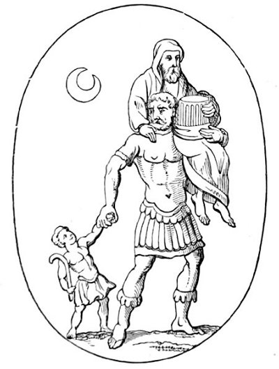 ORIGIN OF CARICATURE AND GROTESQUE.—SPIRIT OF CARICATURE IN EGYPT.—MONSTERS: PYTHON AND GORGON.—GREECE.—THE DIONYSIAC CEREMONIES, AND ORIGIN OF THE DRAMA.—THE OLD COMEDY.—LOVE OF PARODY.—PARODIES ON SUBJECTS TAKEN FROM GRECIAN MYTHOLOGY: THE VISIT TO THE LOVER: APOLLO AT DELPHI.—THE PARTIALITY FOR PARODY CONTINUED AMONG THE ROMANS: THE FLIGHT OF ÆNEAS.