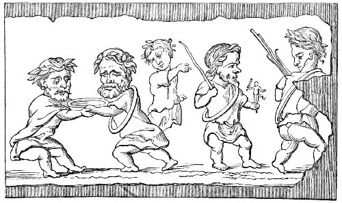 | ORIGIN OF THE STAGE IN ROME—USES OF THE MASK AMONG THE ROMANS—SCENES FROM ROMAN COMEDY—THE SANNIO AND MIMUS—THE ROMAN DRAMA—THE ROMAN SATIRISTS—CARICATURE—ANIMALS INTRODUCED IN THE CHARACTERS OF MEN—THE PIGMIES, AND THEIR INTRODUCTION INTO CARICATURE; THE FARM-YARD; THE PAINTER’S STUDIO; THE PROCESSION—POLITICAL CARICATURE IN POMPEII; THE GRAFFITI | 23 |