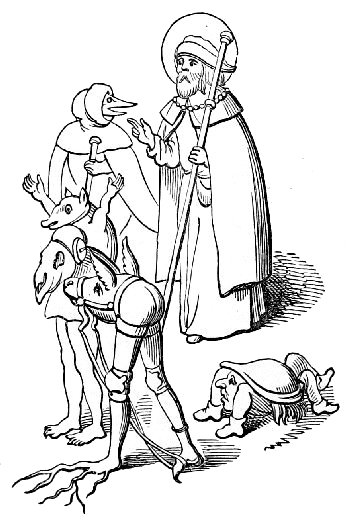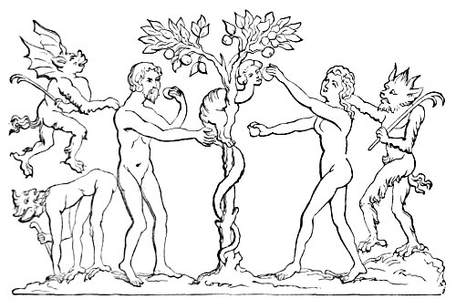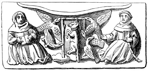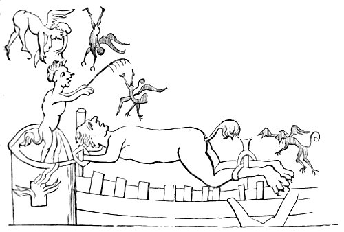 | THE PERIOD OF TRANSITION FROM ANTIQUITY TO THE MIDDLE AGES—THE ROMAN MIMI CONTINUED TO EXIST—THE TEUTONIC AFTER-DINNER ENTERTAINMENTS—CLERICAL SATIRES: ARCHBISHOP HERIGER AND THE DREAMER; THE SUPPER OF THE SAINTS—TRANSITION FROM ANCIENT TO MEDIÆVAL ART—TASTE FOR MONSTROUS ANIMALS, DRAGONS, ETC.; CHURCH OF SAN FEDELE, AT COMO—SPIRIT OF CARICATURE AND LOVE OF GROTESQUE AMONG THE ANGLO-SAXONS—GROTESQUE FIGURES OF DEMONS—NATURAL TENDENCY OF THE EARLY MEDIÆVAL ARTISTS TO DRAW IN CARICATURE—EXAMPLES FROM EARLY MANUSCRIPTS AND SCULPTURES | 40 |