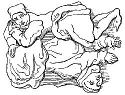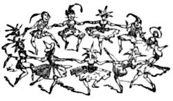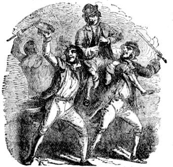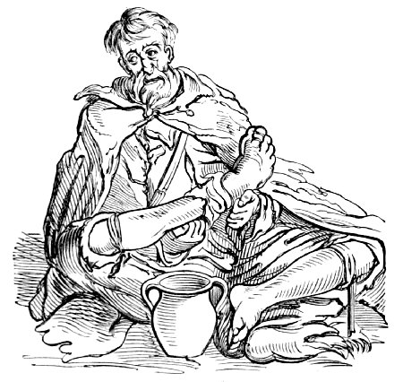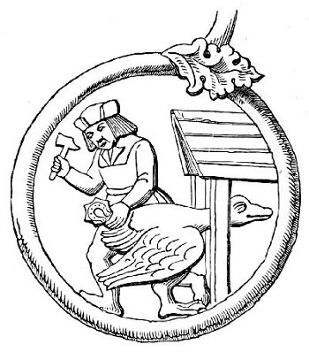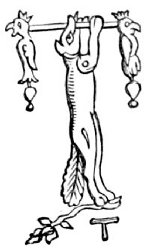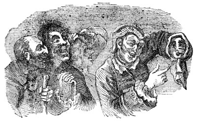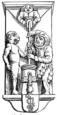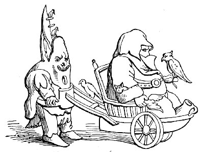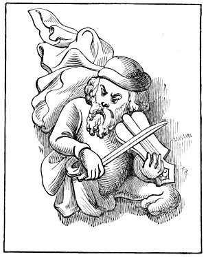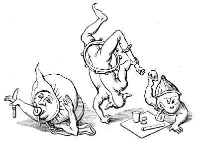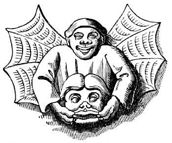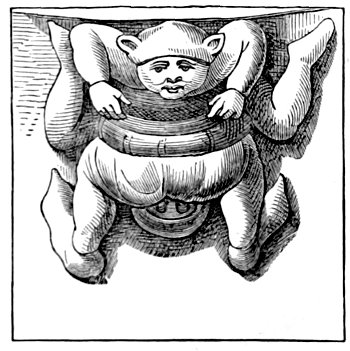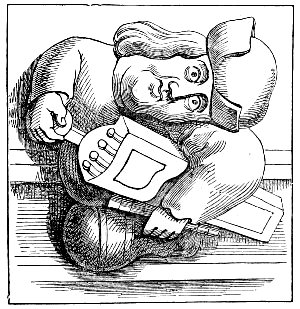 A tendency to burlesque and caricature appears, indeed, to be a feeling deeply implanted in human nature, and it is one of the earliest talents displayed by people in a rude state of society. An appreciation of, and sensitiveness to, ridicule, and a love of that which is humorous, are found even among savages, and enter largely into their relations with their fellow men. When, before people cultivated either literature or art, the chieftain sat in his rude hall surrounded by his warriors, they amused themselves by turning their enemies and opponents into mockery, by laughing at their weaknesses, joking on their defects, whether physical or mental, and giving them nicknames in accordance therewith,—in fact, caricaturing them in words, or by telling stories which were calculated to excite laughter. When the agricultural slaves (for the tillers of the land were then slaves) were indulged with a day of relief from their labours, they spent it in unrestrained mirth. And when these same people began to erect permanent buildings, and to ornament them, the favourite subjects of their ornamentation were such as presented ludicrous ideas. The warrior, too, who caricatured his enemy in his speeches over the festive board, soon sought to give a more permanent form to his ridicule, which he endeavoured to do by rude delineations on the bare rock, or on any other convenient surface which presented itself to his hand. Thus originated caricature and the grotesque in art. In fact, art itself, in its earliest forms, is caricature; for it is only by that exaggeration of features which belongs to caricature, that unskilful draughtsmen could make themselves understood.