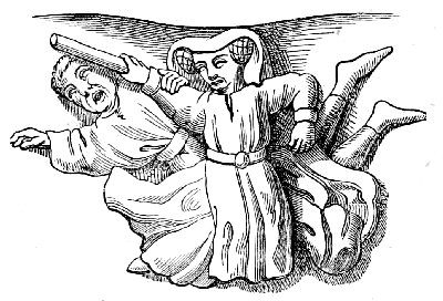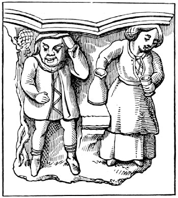 | CARICATURES OF DOMESTIC LIFE—STATE OF DOMESTIC LIFE IN THE MIDDLE AGES—EXAMPLES OF DOMESTIC CARICATURE FROM THE CARVINGS OF THE MISERERES—KITCHEN SCENES—DOMESTIC BRAWLS—THE FIGHT FOR THE BREECHES—THE JUDICIAL DUEL BETWEEN MAN AND WIFE AMONG THE GERMANS—ALLUSIONS TO WITCHCRAFT—SATIRES ON THE TRADES: THE BAKER, THE MILLER, THE WINE-PEDLAR AND TAVERN KEEPER, THE ALE-WIFE, ETC. | 118 |