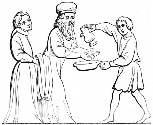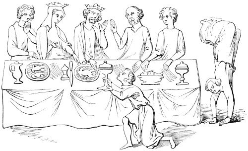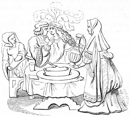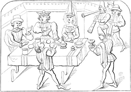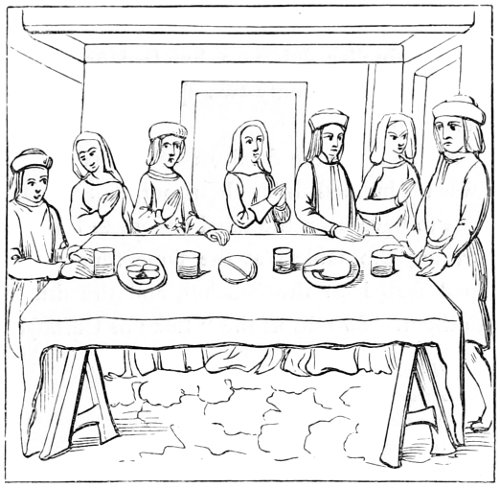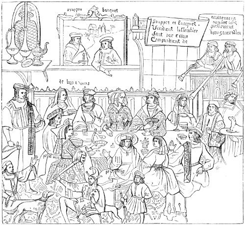 | Slow progress of society in the fifteenth century—enlargement of the houses—the hall and its furniture—arrangement of the table for meals—absence of cleanliness—manners at table—the parlour | 359 |