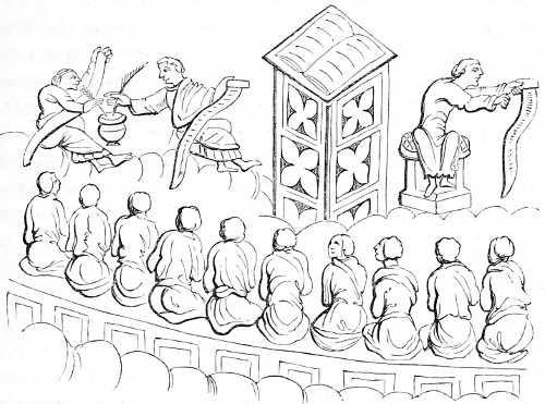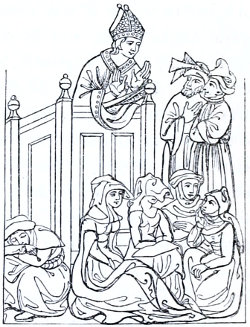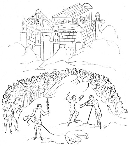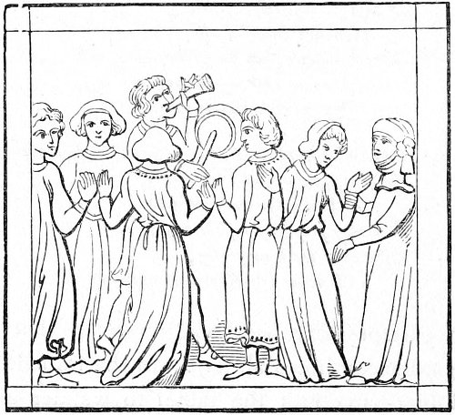 15 Pueri et adolescentes, ... illic convenientes, more Anglorum luctamina et alia ludicra exercebant puerilia, et cantilenis et musicis instrumentis sibi invicem applaudebant, unde propter turbam puerorum et puellarum illic concurrentium, mos inolevit ut in eodem die illic conveniret negotiandi gratia turba vendentium et ementium.—MS. Harl. No. 3601 fol. 12, vo.