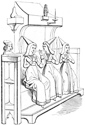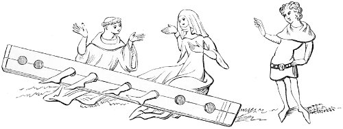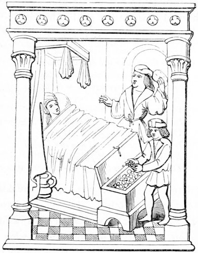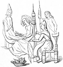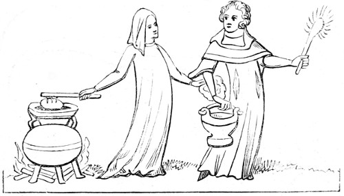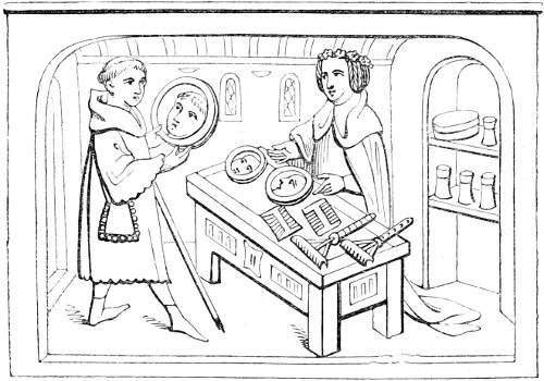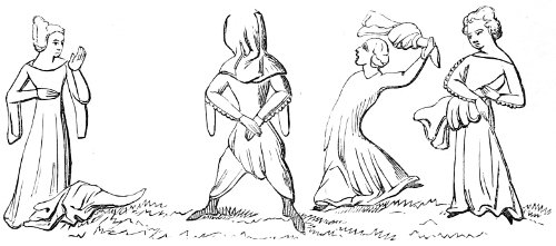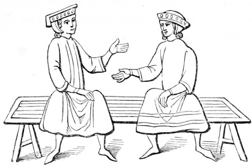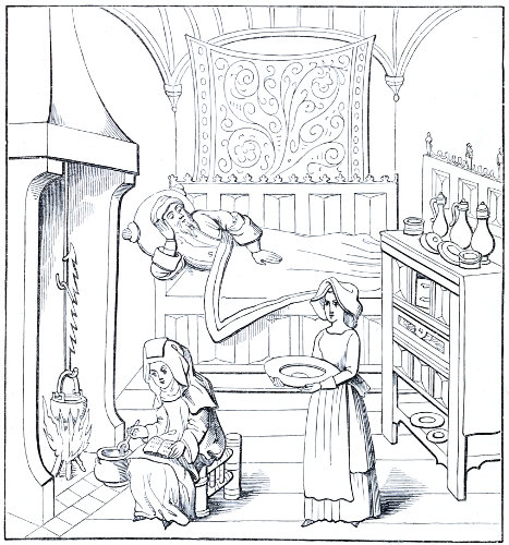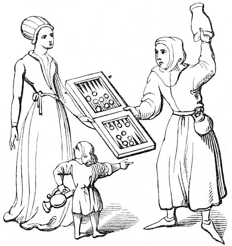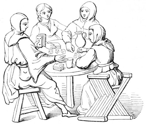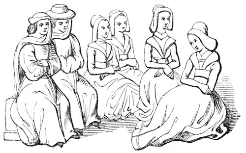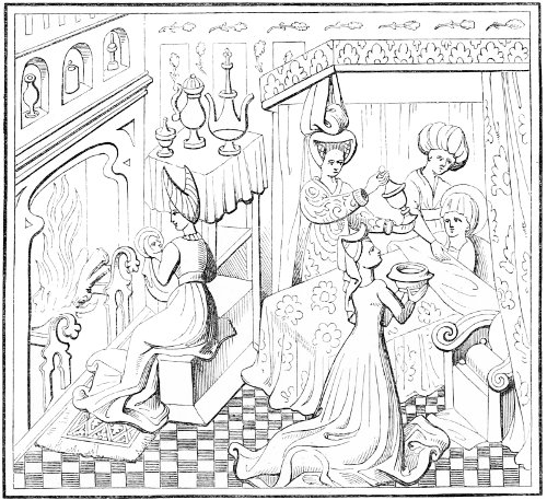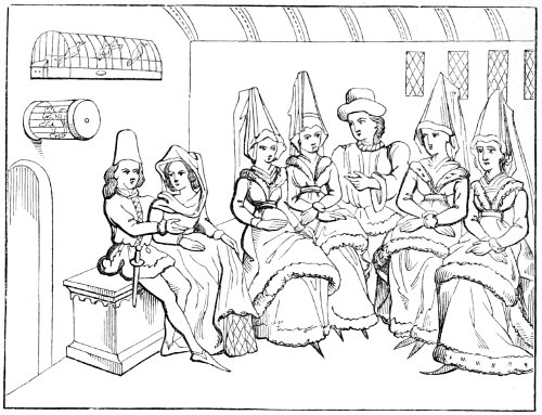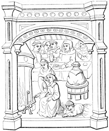 | State of society—the female character—greediness in eating—character of the mediæval servants—daily occupations in the household: spinning and weaving; painting—the garden and its uses—games out of doors; hawking, etc.—travelling, and more frequent use of carriages—taverns; frequented by women—education and literary occupations; spectacles | 415 |