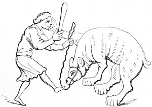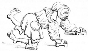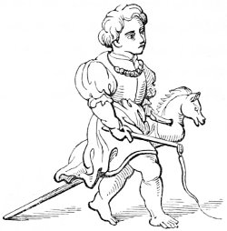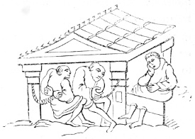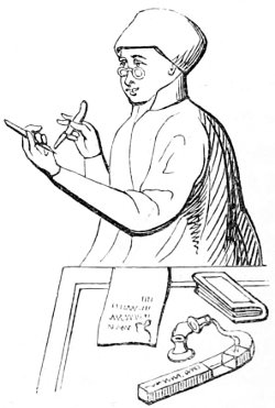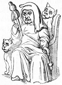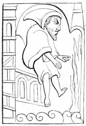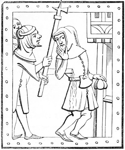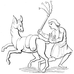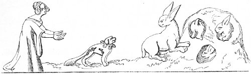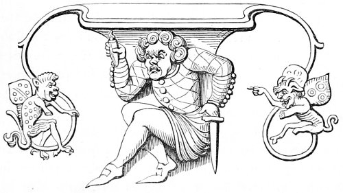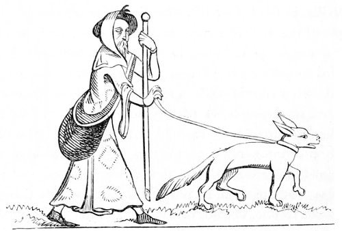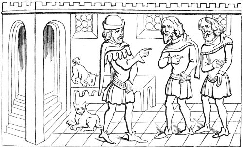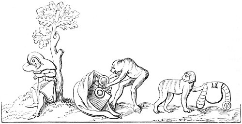 26 The Latin original of this story is so quaint that it deserves to be given ipsissimis verbis. “De rustico et simia. Quidam aulam cujusdam nobilis intrans, vidensque simiam de secta filiorum vestitum, quia dorsum ad eum habebat, filium credidit esse domini, cui cum reverentia qua debuit loqueretur. Invenit esse simiam super eum cachinnantem, cui ille, ‘Maledicaris!’ inquit, ‘credidi quod fuisses Jankyn filius domini mei.’”—Latin Stories, p. 122.