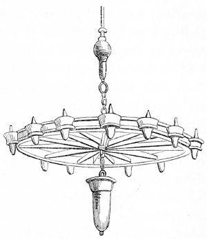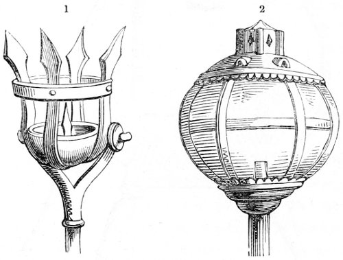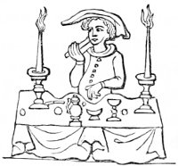 28 Et ayez fait adviser par avant, qu’ils aient chascun loing de son lit chandelier à platine pour mettre sa chandelle, et les aiez fait introduire sagement de l’estaindre à la bouche ou à la main avant qu’ils entrent en leur lit, et non mie à la chemise.—(Ménagier de Paris, ii. 71.)
