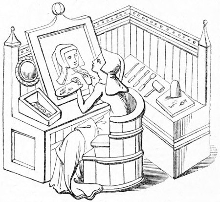 | The chamber and its furniture and uses—beds—hutches and coffers—the toilette; mirrors | 399xiv |