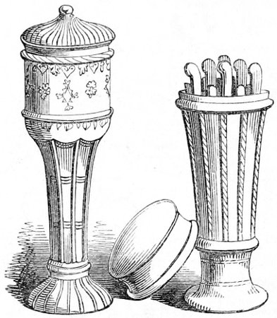 21 Quidam de villula in confinio posita, artificiosus minister, sub diurno tempore studiosus advenit, cujus negotiationis opus in pectinibus conformandis, tabulatis et scaccariis, talis, spiniferis, et cæteris talibus, de cornuum vel solidiori ossuum materia procreandis et studium intentionis effulsit.—Reg. Dunelm, c. 88.