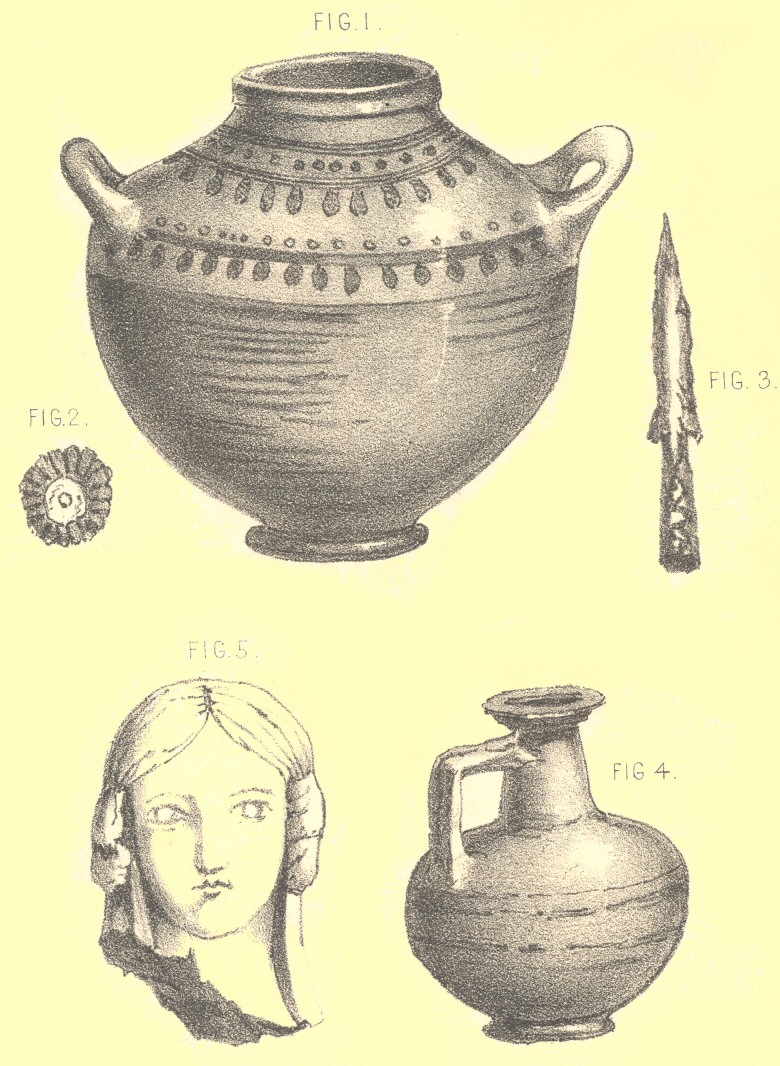 Roman Remains from Wroxeter, in the possession of Samuel Wood, Esq., and Mask, in the Museum, Shrewsbury. |