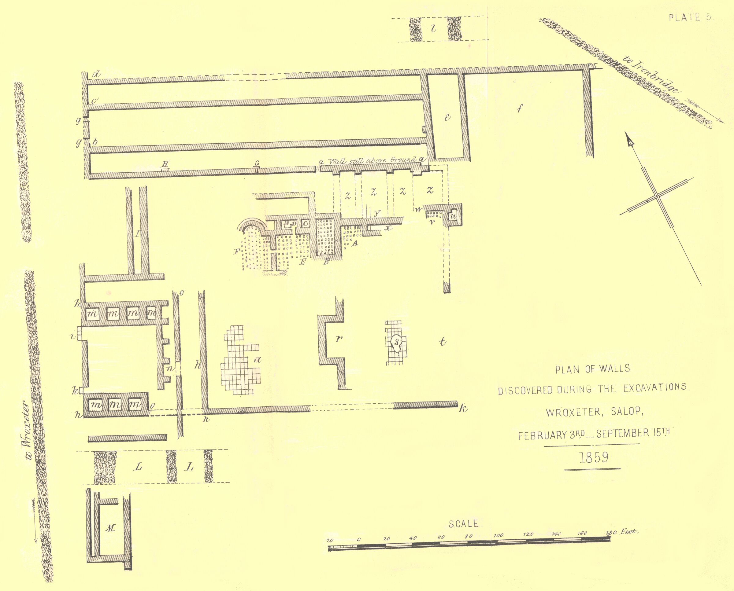 Plan of Walls, discovered by the Excavations at Wroxeter, Salop, from February 3rd to September, 1863 |