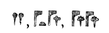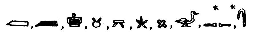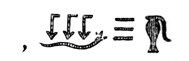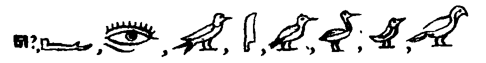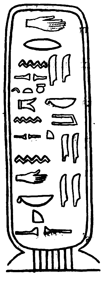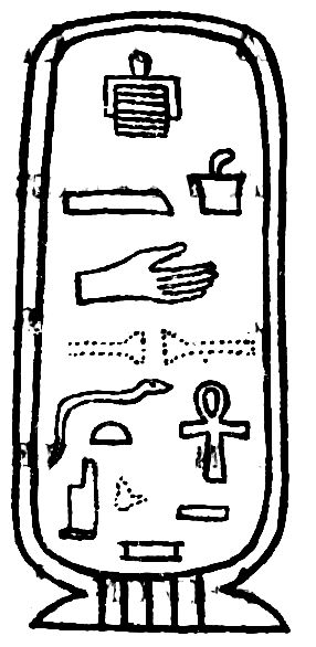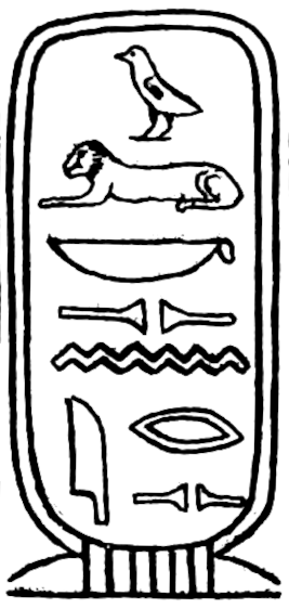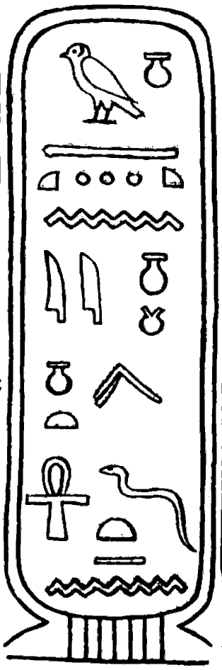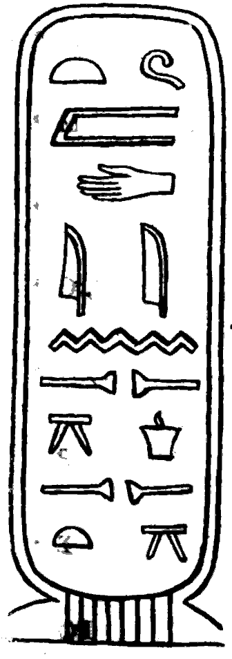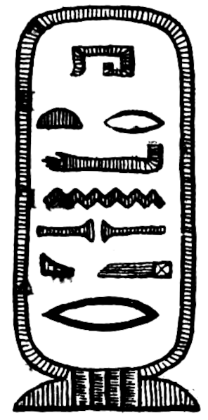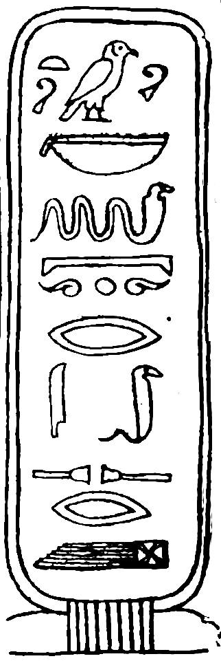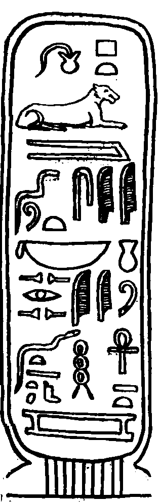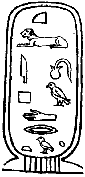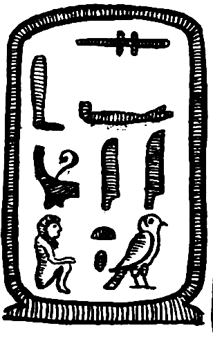 A cursory examination of the few well identified characters, amounting to about 90 or 100, which the hieroglyphical inscription, in its mutilated[Pg 14] state, had enabled me to ascertain, was however sufficient to prove, first, that many simple objects were represented, as might naturally be supposed, by their actual delineations; secondly, that many other objects, represented graphically, were used in a figurative sense only, while a great number of the symbols, in frequent use, could be considered as the pictures of no existing objects whatever; thirdly, that, in order to express a plurality of objects, a dual was denoted by a repetition of the character, but that three characters of the same kind, following each other, implied an indefinite plurality, which was likewise more compendiously represented by means of three lines or bars attached to a single character; fourthly, that definite numbers were expressed by dashes for units, and arches, either round or square, for tens; fifthly, that all hieroglyphical inscriptions were read from front to rear, as the objects naturally follow each other; sixthly, that proper names were included by the oval ring, or border, or cartouche, of the sacred characters, and often between two fragments of a similar border in the running hand; and, seventhly, that the name of Ptolemy alone existed on this pillar, having only been completely identified by the assistance of the analysis of the enchorial inscription. And, as far as I have ever heard or read, not one of these particulars had ever been established and placed on record, by any other person, dead or alive.