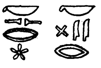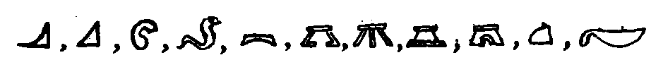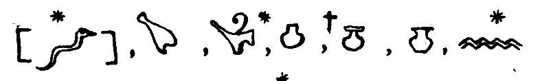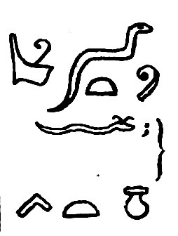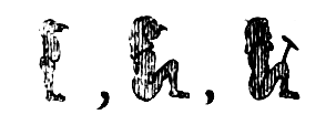 I was led to this conclusion, not only by the untractable nature of the inscription itself, which might have depended on my own want of information or of address, but still more decidedly by the manifest occurrence of a multitude of characters, which were obviously imperfect imitations of the more intelligible pictures, that were observable among the distinct hieroglyphics of the first inscription: such as a Priest, a Statue, and a Mattock or Plough, which were evidently, in their primitive state, delineations of the objects intended to be denoted by them, and which were as evidently introduced among the enchorial characters. But whether or no any other significant words were expressed, in the same inscription, by means of the alphabet employed in it for foreign names, I could not very satisfactorily determine.