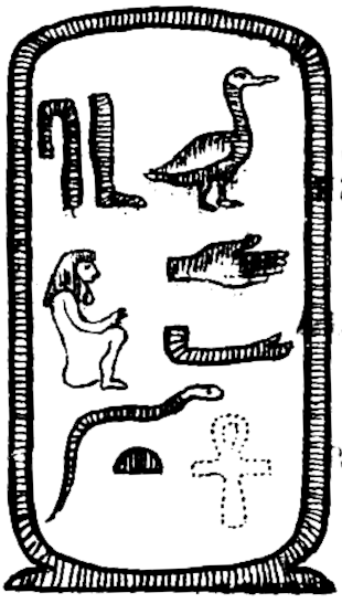There was indeed a traditional record of the true sense of one single character, denoting LIFE, which had been handed down by the ecclesiastical writers, and had been generally received as correct by scholars and antiquaries: although I cannot help suspecting that Sir Archibald Edmonstone’s memory deceives him when he remarks, that the same symbol is often substituted, in Christian inscriptions, for the simpler sign of the cross, with which they more commonly begin. We also find some imperfect hints of a partial knowledge of the sense of the hieroglyphics in the puerile work of Horapollo, which is much more like a collection of conceits and enigmas than an explanation of a real system of serious literature: and while such scattered truths were[Pg 4] confounded with a multitude of false assertions, it was impossible to profit by any of them, without some clue to assist us in the selection. For my own part, if I had ever read of the true signification of the handled cross, it had entirely escaped my recollection.