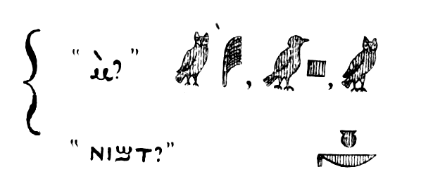 A cursory inspection of the Greek inscription, contained in the pillar of Rosetta, was sufficient to establish, as incontrovertible, the opinion, which had been very ably maintained by our acute and learned countryman Bishop Warburton, that the hieroglyphics, or sacred characters, were not so denominated, as being exclusively appropriated to sacred subjects, but that they constituted a real written language, applicable to the purposes of[Pg 6] history and common life, as well as to those of religion and mythology; since this inscription speaks of the three divisions of the pillar, as containing different versions of the same decree, in the sacred and the vulgar character, and in the Greek language, respectively: and, that there was no fraud in this description, was at once made evident by the just observation of Akerblad, who pointed out, at the end of the hieroglyphical inscription, the three first numerals, indicated by I, II, and III, respectively, where the Greek has “the first and the second ...”; the end being broken off. It was also evident, that the hieroglyphical language continued to be understood and employed in the time of Ptolemy Epiphanes: but here the matter rested for several years; no single representation of an existing object having been so identified, on this or any other monument among the hieroglyphics, as to have its signification determined, even by a probable conjecture.