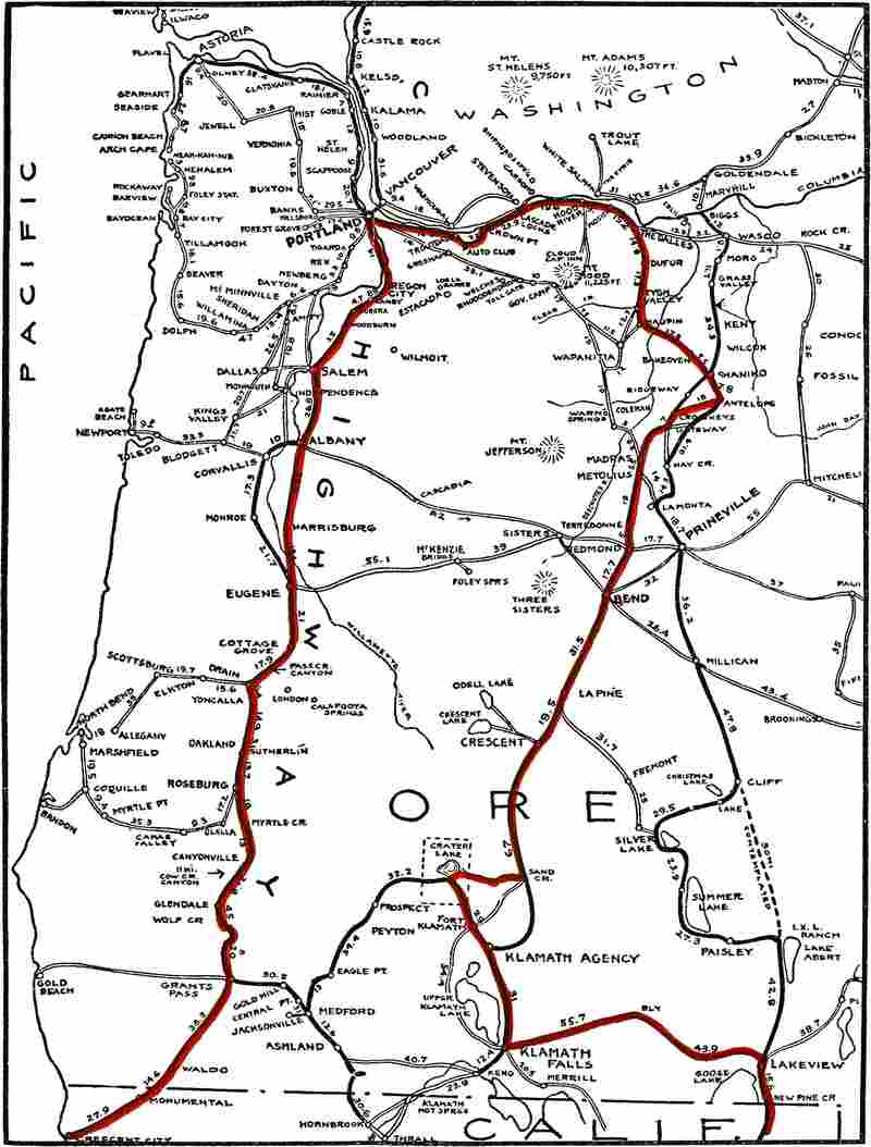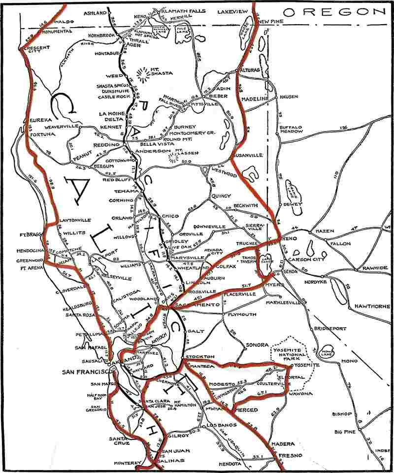 In the title to my book I have given Oregon preeminence,—though I have covered some adjacent territory outside of the state—because I feel that the predominating interest will be centered in this great commonwealth. I believe I have covered nearly everything in the state that will be likely to interest the average tourist and many of those who make the round by motor will no doubt make San Francisco their starting-point, as we ourselves did. In such cases, our opinion is that the routes we pursued through Northern California are well worth while.