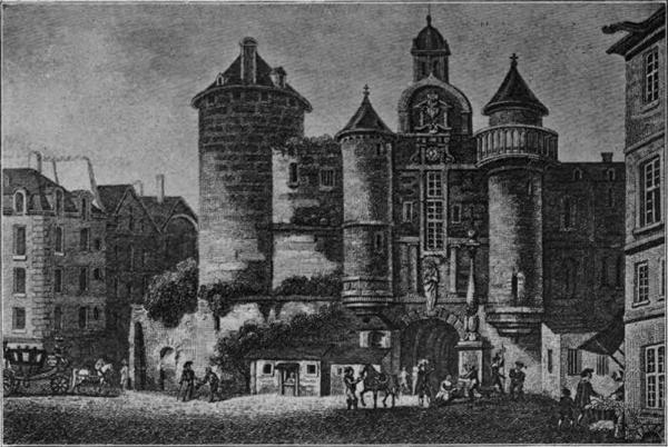 In the days when Paris had not so much as a gate to shut in the face of the invader, the citizen raftsmen of the Seine thought it well to have a prison, and "dug a hole in the middle of their isle." This, it seems, was the sorry beginning of the Conciergerie; but the details of that vanished epoch are scant. Palace and prison are thought to have been constructed at about the same date: the palace, which was principally a fortress, was the residence of the kings; the Conciergerie was their dungeon. Rebuilt by Saint Louis, the Conciergerie became in part—as its name implies—the dwelling of the Concierge of the palace. According to Larousse, the Concierge "was in some sort the governor of the royal house, and had the keeping of the King's prisoners, with the right of low and middle justice" (basse et moyenne justice). In 1348, the Concierge took the official title of bailli; the functions and privileges of the office were enlarged, and it was held by many persons of distinction, amongst whom was Jacques Coictier, the famous doctor of Louis XI. As the practice was, in an age when every gaoler "exploited" his prisoners, the concierge-bailli taxed the victuals he supplied them with, and charged what he pleased for the hire of beds and other cell-equipments; while it happened more than once, says Larousse, "that prisoners who were entitled to be released on a judge's order, were detained until they had paid all prison fees." On such a system were the old French gaols administered. The office of concierge-bailli, with its voluminous powers, and its manifold abuses, was in existence until the era of the Revolution.