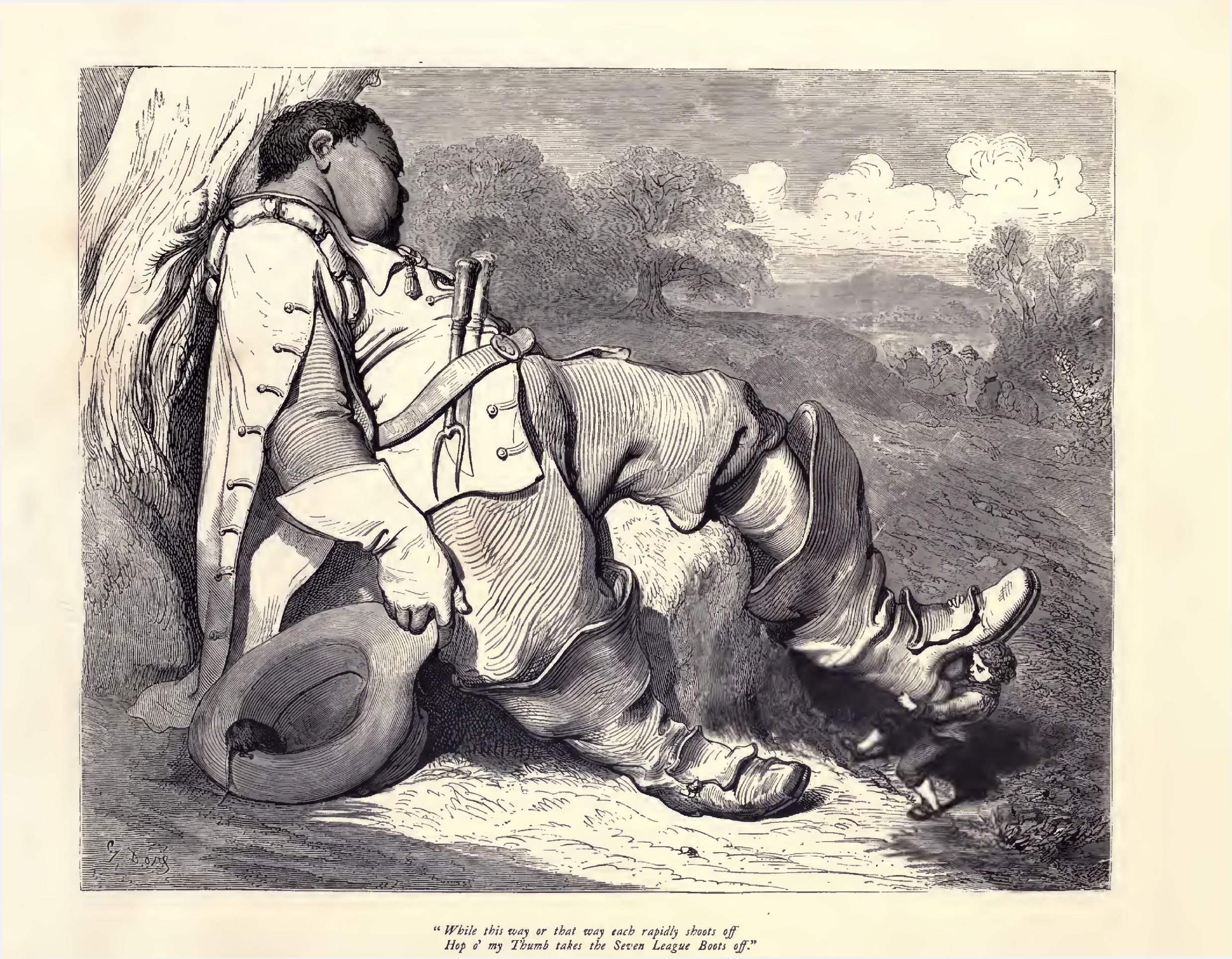 Hop o' my Thumb takes the Seven League Boots off