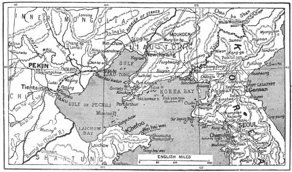Invertebrate China, with scorn of western methods, and complacent rest in the belief that all but her own people are barbarians, had to face an inevitable war with Japan, the sprightly, absorbent, adaptive, western-spirited, whose career in the two score years since her doors were opened to the call of the American Perry has been the marvel of those who knew it. And the conflict was to be on the soil of the Hermit Nation, Corea, “the Land of Morning Calm,” for centuries the land of contention between “the Day’s Beginning” and “the Middle Kingdom.”