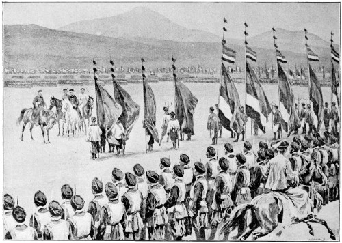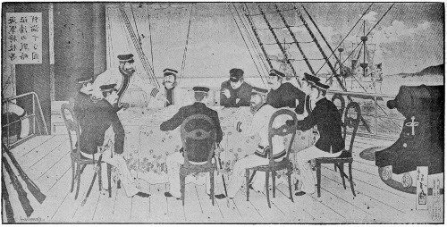 It was now felt that the power of the Japanese government to execute the armistice would be put a critical test. The military power of Japan, in the judgment of many intelligent observers, had almost outstripped the civil power during the war. This had caused serious concern as it was feared that the military element backed by the war spirit among the people would not submit to an armistice even if the civil authorities ordered one. To meet this emergency a change of army commanders was made early in March. There had been three army corps operating in different campaigns and each under a general of supreme authority over his particular campaign. Prince Komatsu was created commander-in-chief 666over all armies in anticipation of an armistice. The purpose of this step was to concentrate authority in one man in close touch with the imperial household who could thus execute an armistice by a simultaneous cessation of hostilities by the three armies. It now remained to be seen whether Prince Komatsu could execute the important commission given to him. The splendid discipline shown by the army during the war gave assurance that there would be immediate acquiescence by the military, and yet Prince Komatsu had to contend against a war spirit inflamed by many victories. It had been said that an armistice would be so unpopular among the people and soldiery that it would insure the political retirement of Japan’s two chief statesmen, Count Ito and Viscount Matsu, who had served as peace envoys.