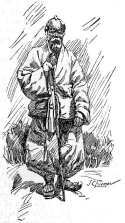 After three days of obstinate silence the assassin dropped his air of bravado and made a full confession to Judge Toyama, who conducted a private examination at the Bakan court. The prisoner declared that he had long brooded over the causes leading to the disturbance of peace in the east, and had reached the conclusion that the evil practices of Li Hung Chang were accountable for all of them, beginning with the mismanagement of affairs in Corea. He believed that as long as Li lived peace could not be restored and resolved at one time to go to China and kill the viceroy. This purpose was defeated by his inability to raise the necessary 668money, but when he learned that Li was coming to Japan as peace ambassador he felt that his opportunity had arrived. He bought a revolver in Yokohama, March 11, and the next day started for Tokio, reaching Bakan, March 24. At 4:15 o’clock that afternoon he approached the sedan chair in which the ambassador was returning from the conference hall to his lodgings in Shimonoseki and discharged his weapon, aiming it at the victim’s breast. Although he endeavored to steadysteady his right arm by clasping it with the left, he missed his aim inflicting only a slight wound.